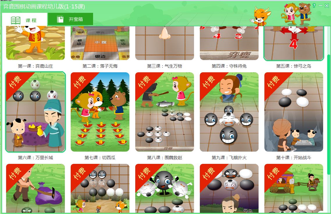 中国首部交互式围棋动画教学系列片,由众多教育心理学界专家和专业人士历时数年倾心打造。课程充分尊重孩子的心理特点和认知能力,循序渐进,深入浅出,语言生动,深奥的围棋知识变得直观易懂,尤其适合4-13岁的孩子学习。
