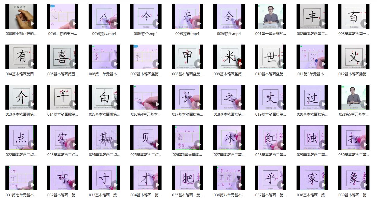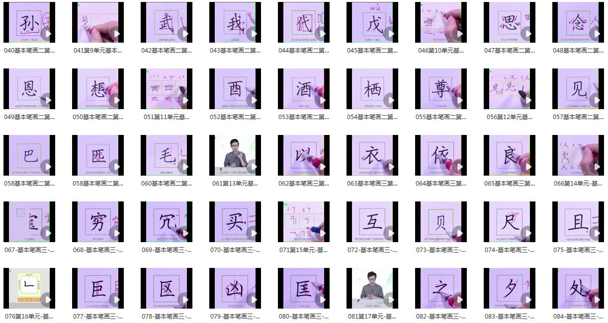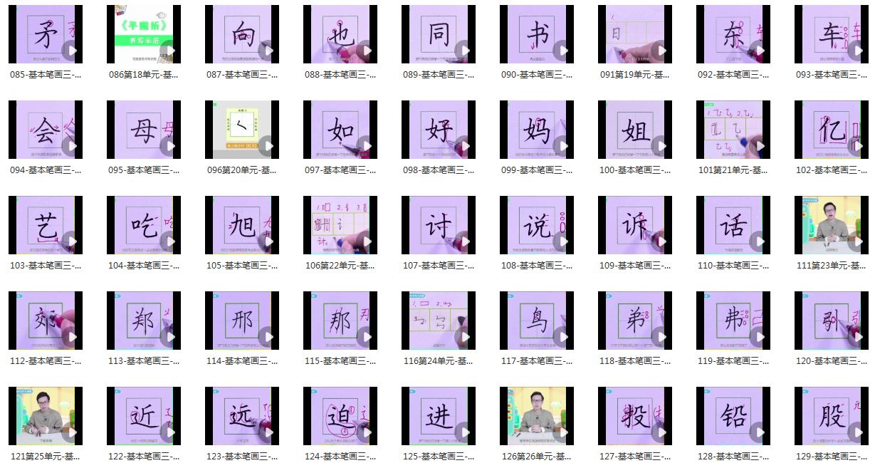 单元总讲15-20分钟,例字讲解3-5分钟,每个视频都包括练习的时间。