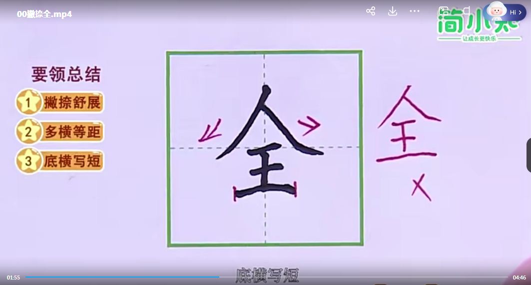 简小知书法,百度网盘,永久反复播放,在家学写字,简小知,写字 练字