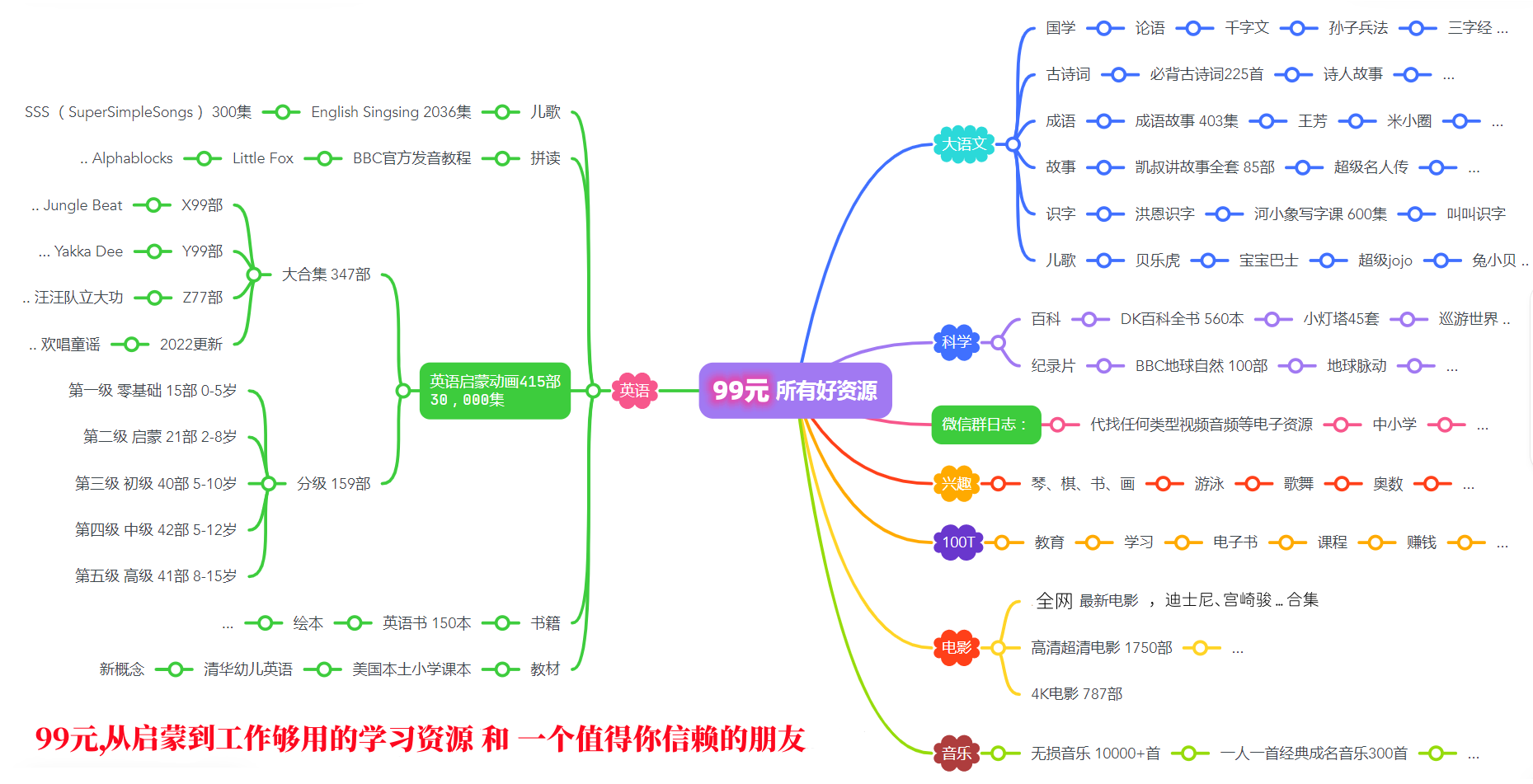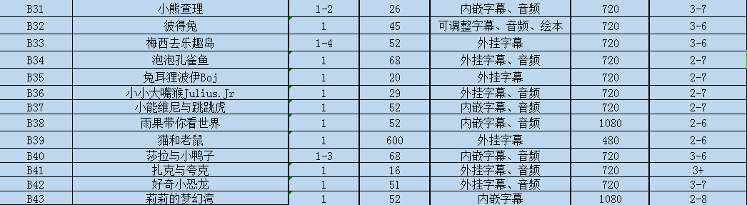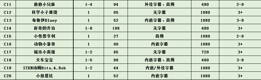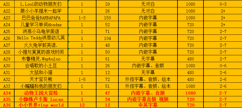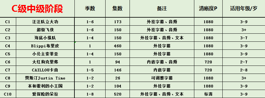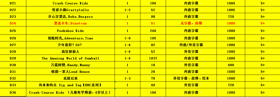 包含:英语、英语动画及电影、纪录片、大语文、科普、... ...
